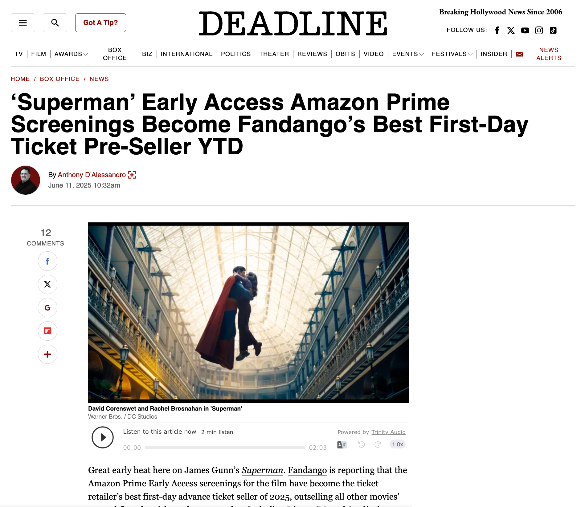 Amazon x DC Studios X Warner brothers | ‘Superman’ Prime Early Access